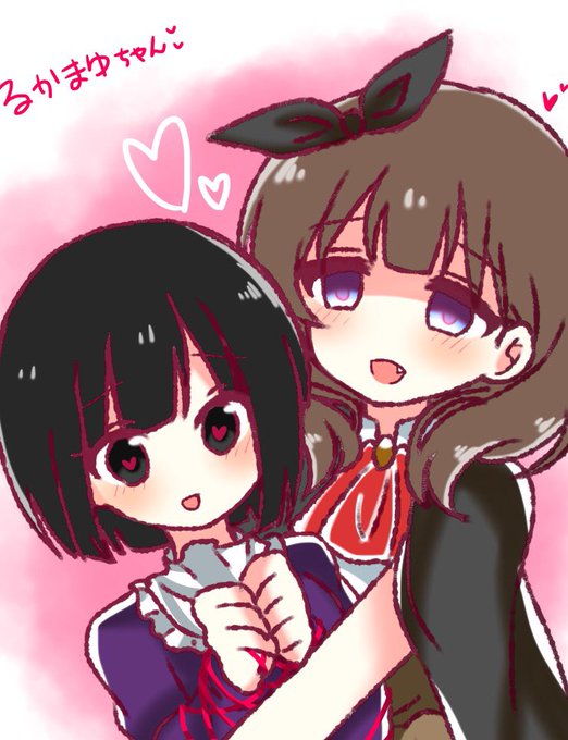@Rukasati_ めちゃくちゃ楽しかったです...! トプ画の女の子が流花さんだと判断して勝手に描きました٩( •̀ω•́ )ﻭ← ハロウィンまゆと流花さんのるかまゆちゃんです〜!よろしければお納めください( ˇωˇ )