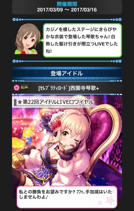 上位報酬【 [セレブリティロード]西園寺琴歌 】の登場から6周年です🌸