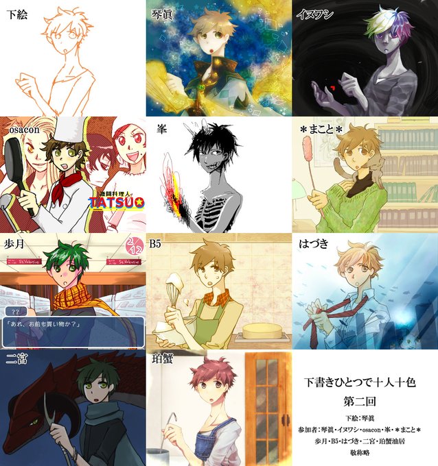 皆様投下し終えたのでまとめアップします!サイズめちゃ重!なぜなら皆原寸大!すげえ・・・すげえよ被ってないよ・・・。転載などは自由でよろしいですか?圧縮などはご自由に行って下さいね! #下書きひとつで十人十色企画