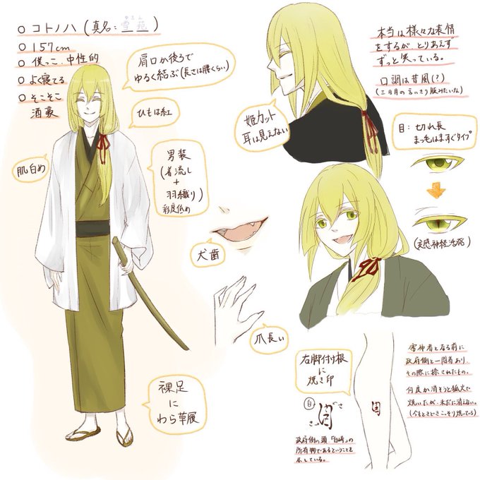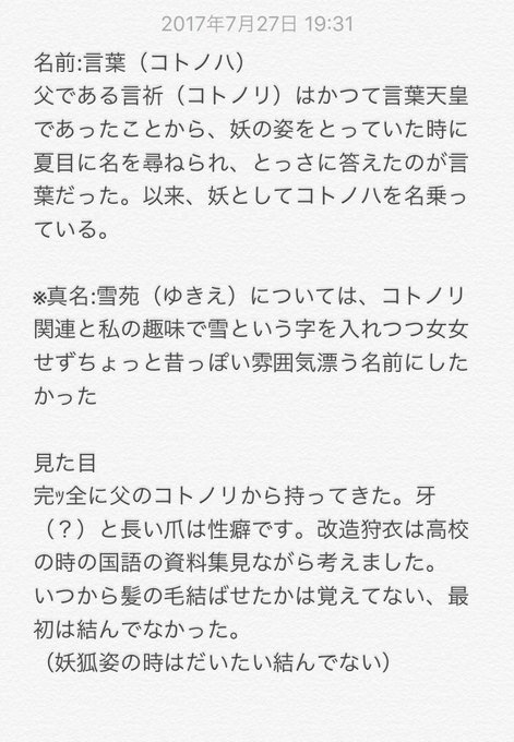 ①名前、見た目の経緯 140字はちょいとキツイのでメモで! 審神者の経緯はクロスオーバーの塊です🙃 (元々九尾設定なのを審神者用に一尾にしてます)