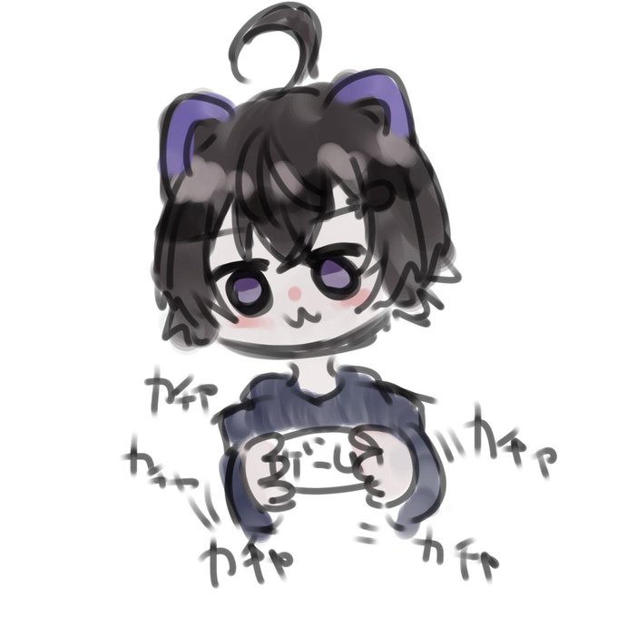 つきやみくんのアイコンのキャラ ねこみみヘッドホンの描き方分からなかったから頭と一体化させてしまったw🤣