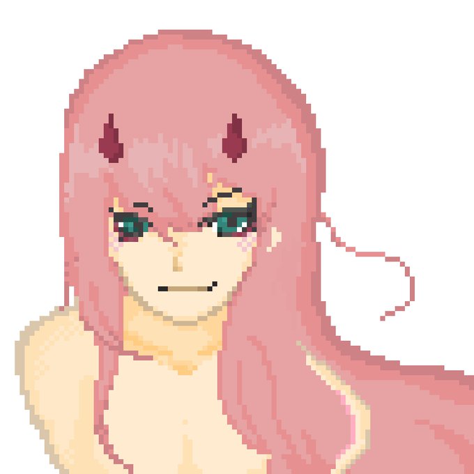 とりあえず、途中で投げ出しかけてるやつ( ・ิω・ิ)はだかにしたのが間違いだった……陰影がわからん…… #ダリフラ #pixelart #ドット絵