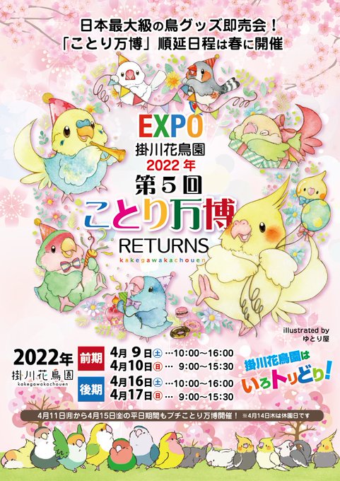いよいよ今日から掛川花鳥園『 #ことり万博 』前期開催ですね🌸