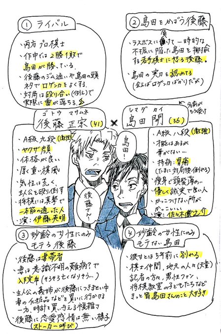 友達に後島の布教で描いたやつ 独断と偏見入ってて、後藤さんと島田さんの情報あってるか怪しいけど……