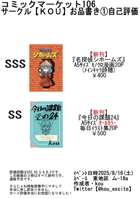 【C106夏コミ情報】お品書きも!