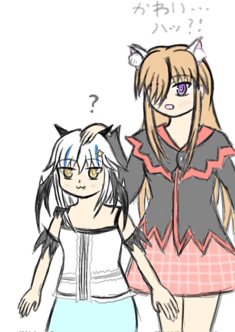 オリキャラ裏話〜 レイちゃんはクールキャラだけど可愛いものが好き。 ···なのでシュアリィちゃんをもふもふしたいという一種の病気にかかってる(え?) #落書き #イラスト
