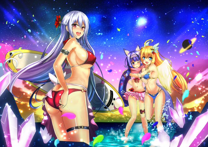 投稿した3体の立ち絵のキャラクター達で描きました。 pixivに投稿しましたので、良かったら見て下さい。 少し小さいサイズですが見れない人用も載せておきます。 http://t.co/0oiT9EP1ar