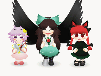 そういえばリアルアピカコンテストの落選供養してなかった。キャラ制限が書いてなかったので、レイシス・霊夢・GUMIの三人組で描いたのでした