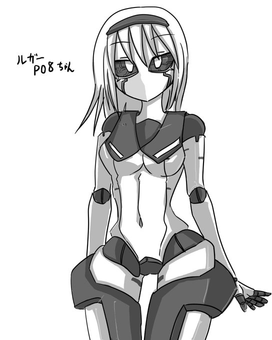 #銃娘 ルガーP08ちゃん。 キャラデザ練習の題材として考えた感じだから名前も設定も今のところ無しの子になります。 とりあえずロボ娘にしてやれって感じ。 動力は足にあります。