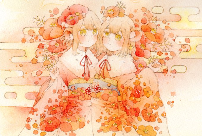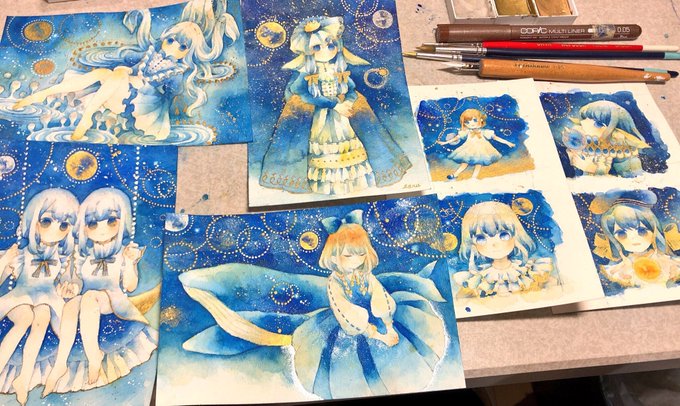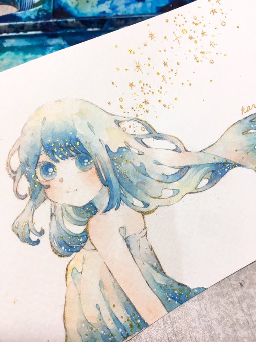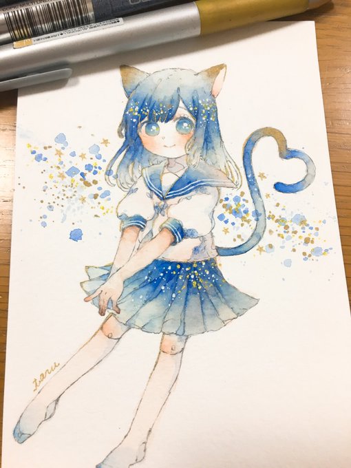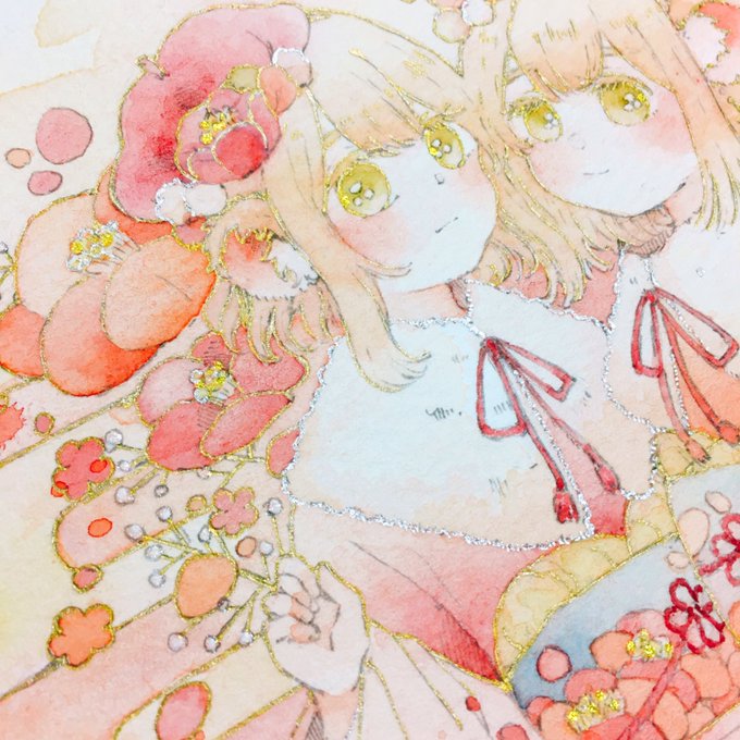 年賀状の子ですね...スキャンだと伝わりにくいんですけれど...線画が所々キラキラしてて...とってもかわいらしいんです...4種類のキラキラ使いました...ふへ...