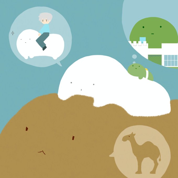 「撫でる」で参加させていただきます おそるおそるのメレンゲと自ら撫でられるそらまめ、見守るすあま #プリンタニア版ワンドロワンライ