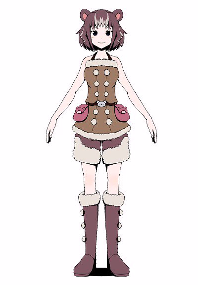 アニメ練習用キャラデータ作成ついでに【くま子】をリメイク。初期から大して変わってない服を拙いセンス稼働させて印象残しつつ大幅変更。というか初期くま子創ったの9年近く前かよ…センス無いにしても胸元魚マークは酷すぎた。せめてちゃんと鮭描けよ。そして新くま子は塗り関係なしで変わりすぎ
