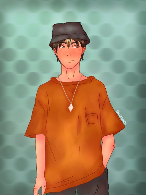 nishinoya usando chapéu de pescador e roupinhas estilosas passando na sua tela