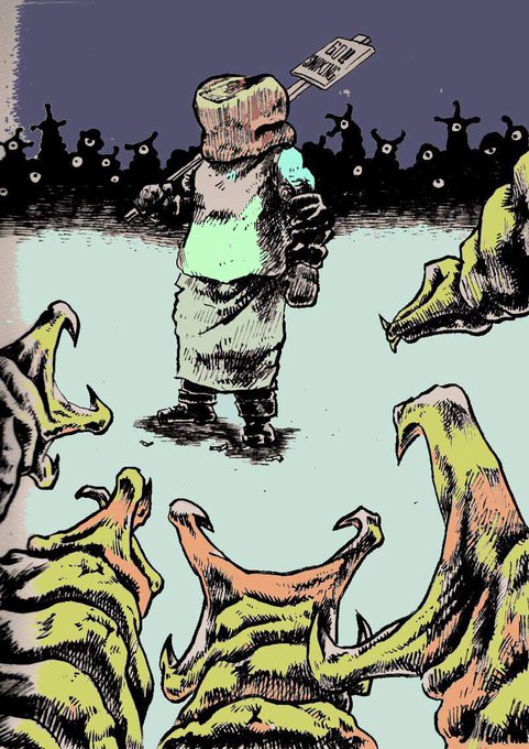 #スモーキング・エイリアンズ で特殊メイクを担当された土肥さんに描いていただいた、タバコ田タバ男VSエイリアン。使ってもいいと言ってもらえたのでお見せするでモク! あ、本編にタバ男は出ておらず、イメージイラストですからねモク(笑)。 てか、これTシャツにしたくなるでモク!