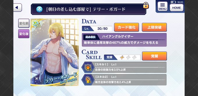 執事の京が出なさすぎてむしゃくしゃしたので、被りまくった既存のSRを売りまくって覚醒させました。