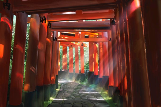 随分前に描いた伏見稲荷の参道😊