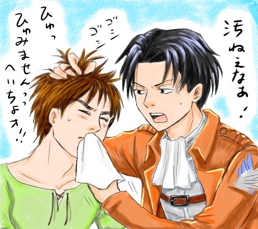 んでこっちが続き。綺麗好きな兵長にヨダレをフキフキしてもらうエレン。