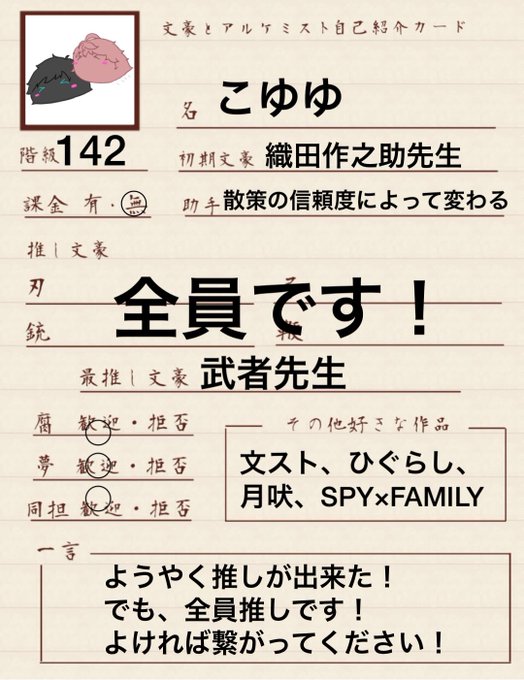 #6周年を祝って文アル好きさんと繋がりたい