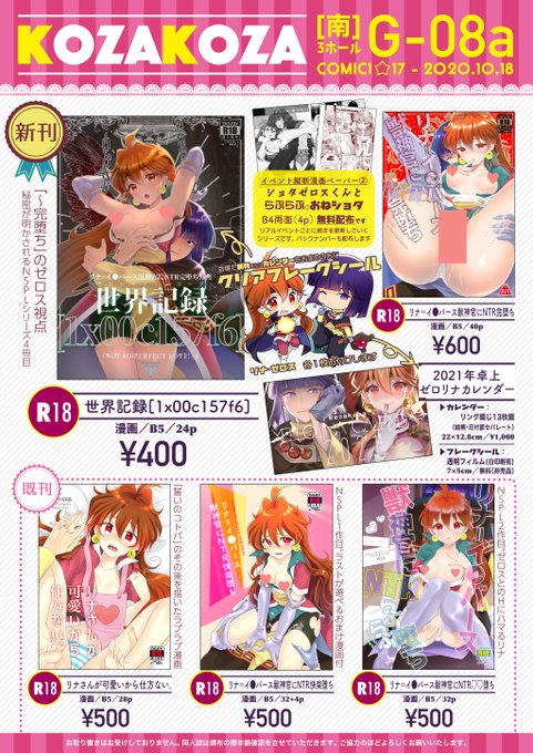 10月18日・COMIC1☆17のお品書きです。