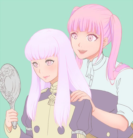 リシテアとヒルダ #FE3H 化粧をリシテアに教えるヒルダを描きたいのだけど色塗りつらい