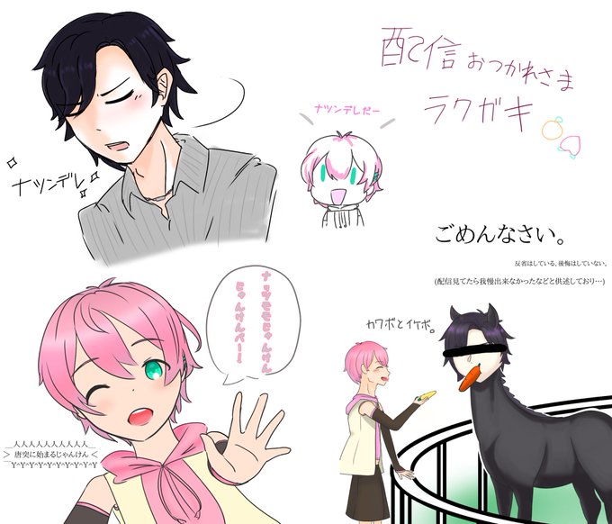 先に謝ります。 すみませんでした。 この間の配信お疲れ様落書きです〜! #ナツモモアート