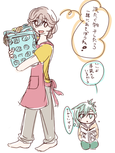ショタ嶺ニ。美風氏の上に乗ってます。心は25歳だけど、体が小さくなってしまって一人寝が心細い成人男性。