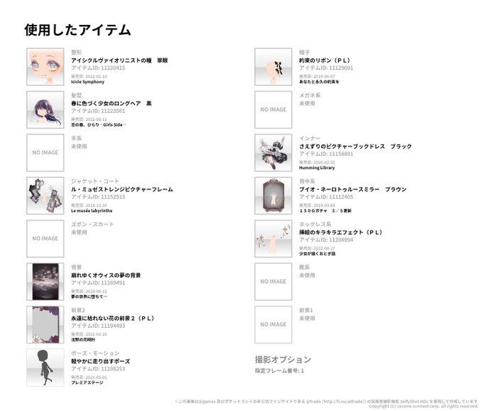 #セルフィファンクローゼット 古いガチャから順に使いたいアイテムをクローゼットに放り込んでいる……使ってみたかったアイテムを使ってコーデできてたのしいなあ……。