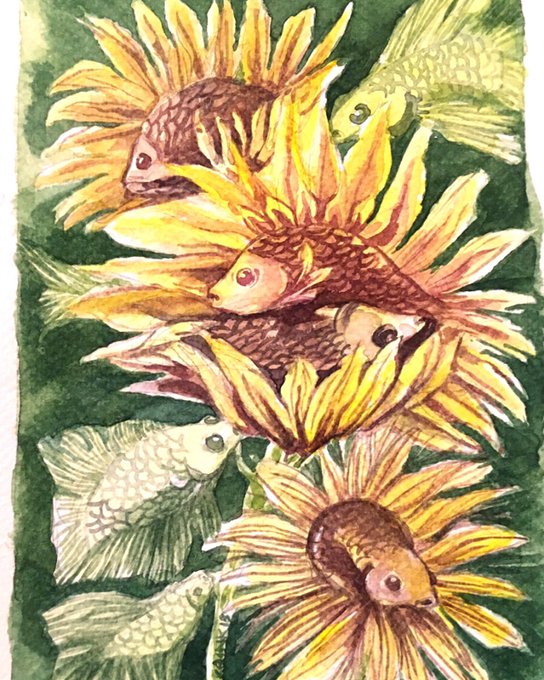 sunflower fishies, commissioned piece. Had fun figuring out this work 🌻🐠 Hope this brightens your end of the year!