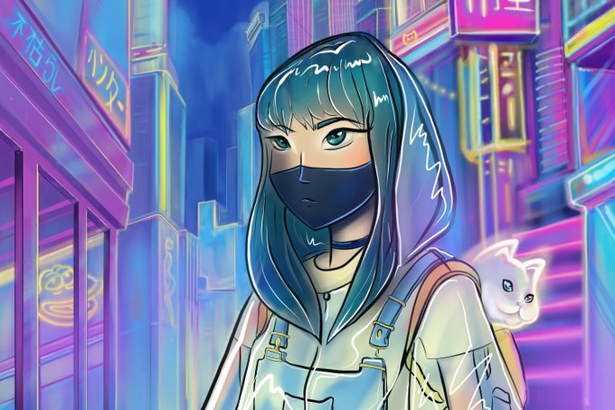 Girl with the spirit of a cat wanders the metaverse in search of her relatives.Crypto symbols on her path indicate the right direction to her goal.She must find the grail of justice in order to free her loved ones and bring peace to the universe.@Neonrain_io