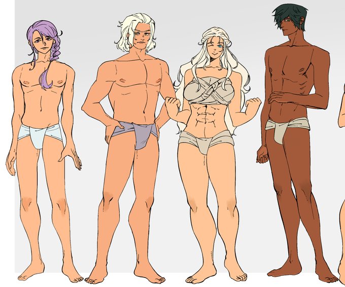 this was supposed to be a quick exercise from the question: what do the ancients wear as smallclothes? and it went to my perceived body types of the ancients cast, then i figured it would be useful to have them all lined up for a quick reference sheet