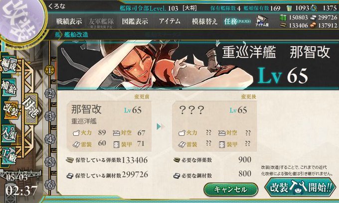 やったー!那智改二にできた!!