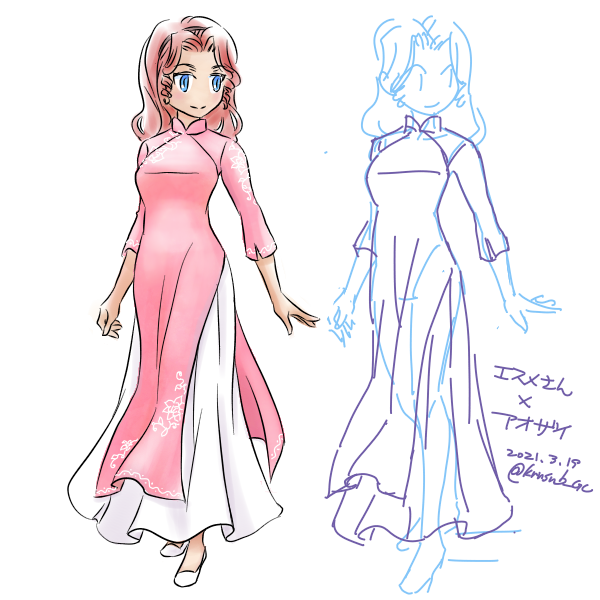 TCGでいうところのレアリティが上がり装飾が増えたキャラのカード絵の設定画とかそんなイメージ。(仕事中の妄想の産物)