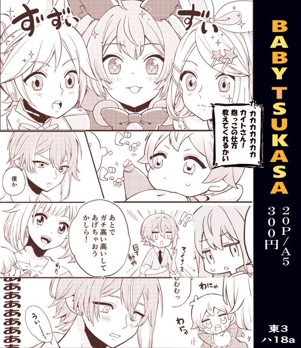 【7/23 巡るいつかのSTAGE!】新刊サンプルです。 『BABY TSUKASA』 全年齢/A5/20P/300円 セカイで赤ちゃんになってしまった司とワンダショがわちゃわちゃするお話。 支部はこちら😌https://t.co/oyqroSQm3R