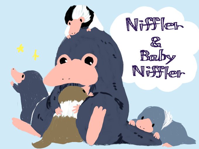 ファンタビ過去絵を引っ張り出してニフラー描いたつもりに! 4枚目は一時期アイコンにしてたくらいお気に入り☺