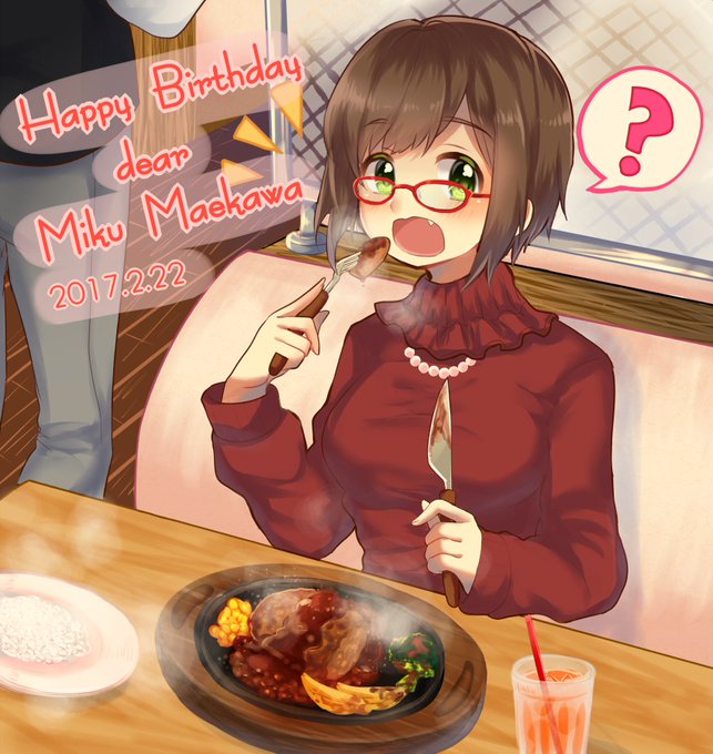 みくにゃんお誕生日おめでとう🎉🎂🎁🎉🎈普段はお魚に縁がある(?)けど今日は思う存分ハンバーグ頬張ってね!!!そして見守らせてね!! #前川みく生誕祭2017