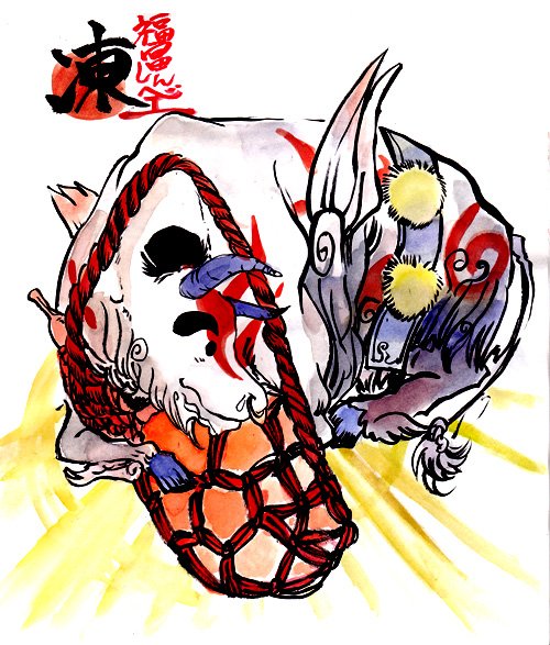 春で桜舞ってるのみると大神やりたくな~RU~これはほぼ模写のは組×筆神様絵