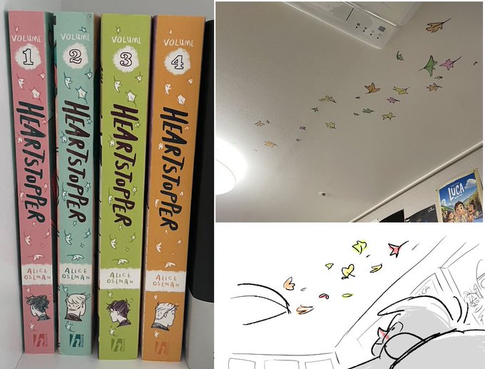 colour practice using pride flags!! finally saw heartstopper and I can't recover from it🥲 I bought heartstopper comics, made leaf stickers, and stuck them on my ceiling. can't wait for the next season!!