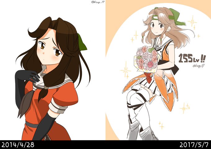 #同じキャラで初めて描いたのと最後に描いたのを比較 最初の神通ちゃんはワンドロ。
