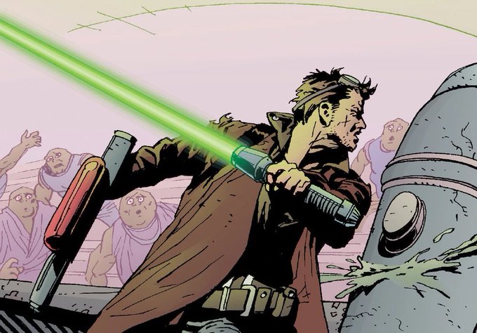 テールズっぽさは、いつかどこかで起こったかもしれない物語、っていう白昼夢的ノンカノン感なのかもしれない。プロットは黒澤映画や西部劇や"シェーン"みたいな、どこの馬の骨か知れないstrangerジェダイが悪党を成敗する定型で、被ってたとこもあるけど、それがまたテールズ味だよね。良い意味で https://t.co/bxywHOllSA