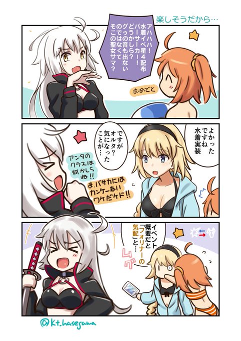水着実装をよろこぶ邪ンヌとジャンヌを描きました✨ 「ジャンヌ、まだしばらくそっとしておいてあげて…」「なるほど…承知しましたマスター」「アハハハハ!!」