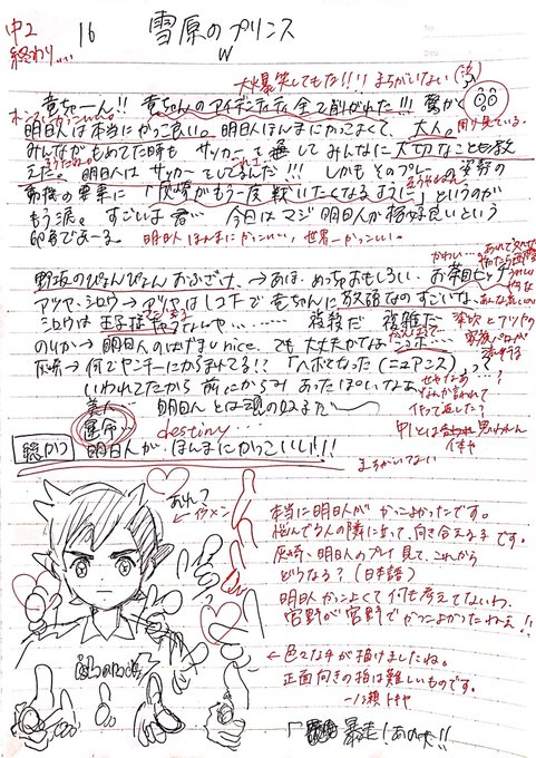感想ノートに描いた明日人、頭蓋骨がおかしい(鮎川)