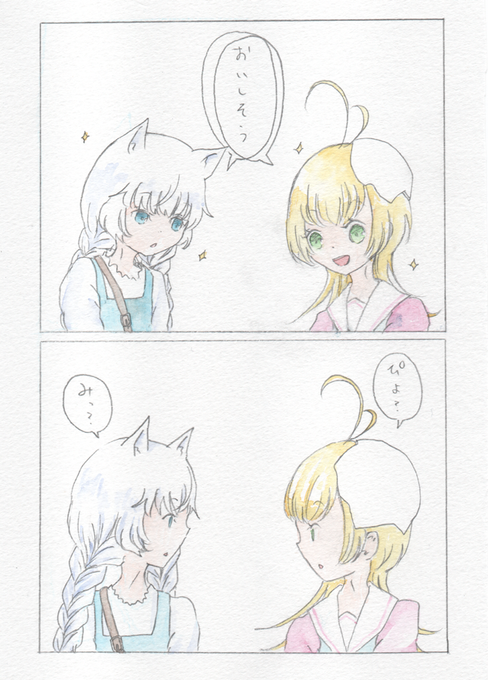 @Periwin_TL 星降り祭のビアンカとギルベルトはこんな感じの格好をして屋台を見て回っていると思います!!ちょっと春っぽい感じ!! #ペリ横_SN