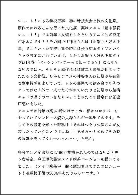 今回気に入ってるのがこの2枚でした。メイド神谷さん、下書きの方が頭身高め?で目がいっちゃっててイラスト的にはそちらの方が良かった気がするのですが現実的に直していったらこうなった(足太いな。まあサッカーやってるんだからいいんですけど)