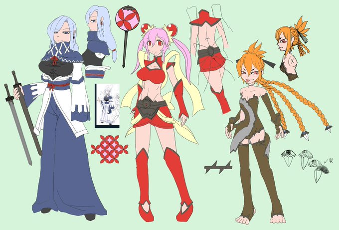 左:トリニティ(女 170cm 剣) 中:ブリアンナ(女 162cm 金瓜錘) 右:ゾーイ(女 140cm 三つ編み) Wakaさんデザイン。5面のキムの前座で登場。ひとりひとりは大したコトないけど3人同時に相手をするので、ボスのキムより苦戦した方もいるかもしれない。