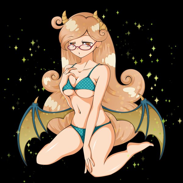 【新SS情報】メンテナンス後から開催の選抜ガチャで登場する、新SS『悪魔司書モニカ(水玉ビキニVer)』のご紹介じゃ!魅惑のボディで相手を骨抜きにする彼女は、持続パラメータダウンスキルを持っておるぞい! #ドラポ #お絵描き