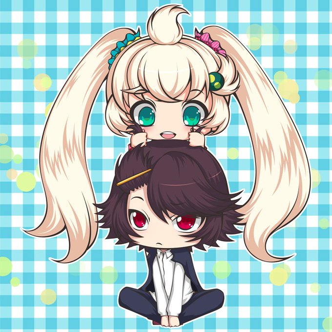 クロウの髪の毛で遊ぶマヒル。この2人はこんな感じに仲良くじゃれてるイメージ。 #ドラポ #ドランポーカー #お絵描き