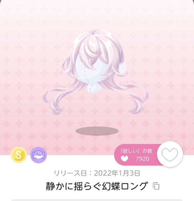これも最近ゲットしたやつで数合わせのために交換したから正直全然ノーマークだったンだけど使ってみてからその可愛さにひっくりかえった。良くする紺、黒系の服とか髪の毛にすごく合うしこれ自体の主張が激しくないかつほぼ真上にあるから頭寂しいなってときにちょうどいい。
