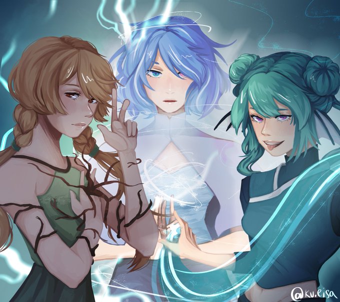 happy 1 year lazulight!! ! !!! !! #Lazulight #pendorART #PomuPaint #Finanart (individual portraits(?) in replies)