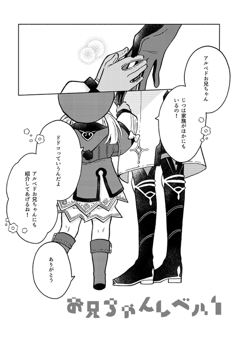2/12 神ノ叡智8 東5ニ24b【eto】 新刊クレーちゃんとアルベドお兄ちゃんのほのぼの兄妹本1種だけなのでお品書きはないです!よろしくお願いしまーす! 「お兄ちゃんレベル1」 A5/400円