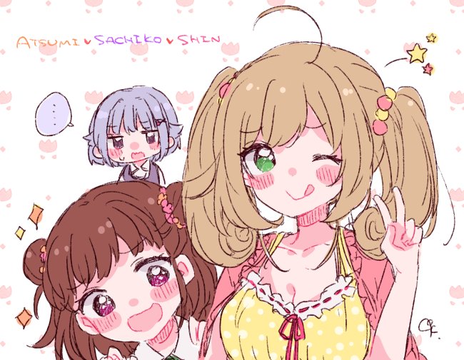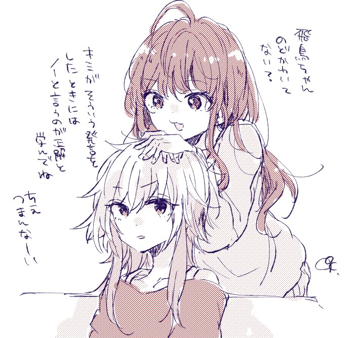 コミックスの表紙を考えながら色々描いてたラフです 色が地味で嫌です!!こいつら本気で華がない!!と自分が産んだにもかかわらず駄々をこねたので、完成版デザイナーさんがハッピーな色合いにしてくれてます。完成までもう少し! #放課後同盟